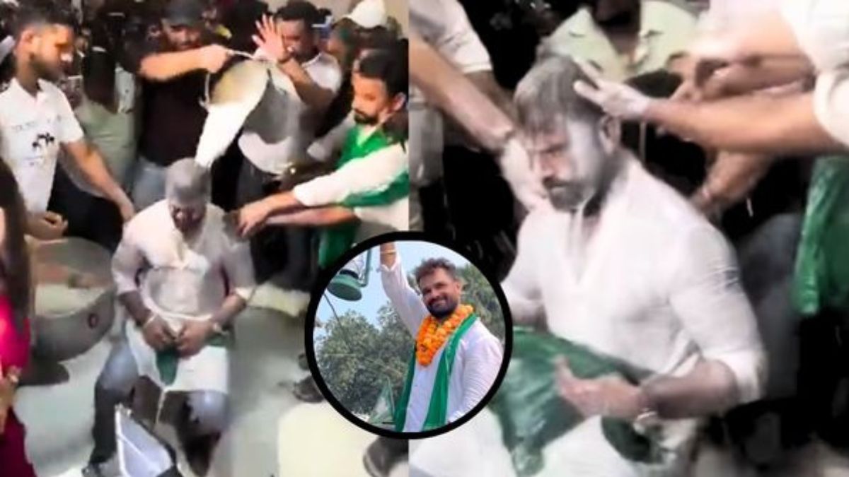 छपरा में खेसारी का जलवा! 400 लीटर दूध से नहलाया गया, 5 लाख के सिक्कों से तोला वजन, वीडियो देख भड़की जनता...