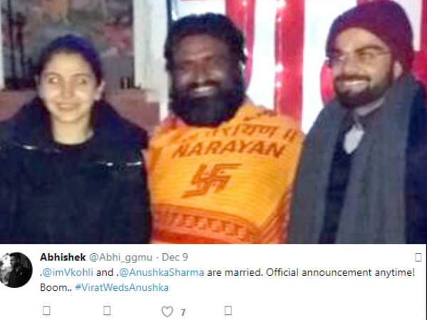 पहले खबर थी कि दोनों 12 या 15 दिसंबर को शादी कर रहे हैं लेकिन इस ट्विटर यूज़र की मानें तो दोनों की शादी, 9 तारीख को ही हो चुकी है।