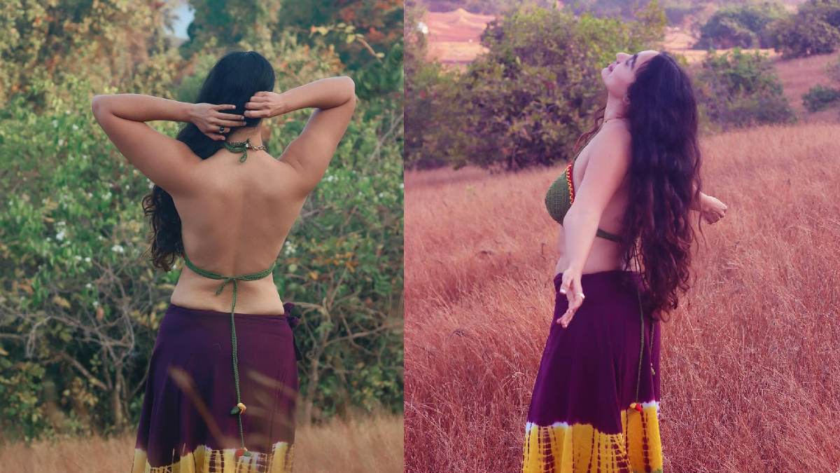 ऊन से बनी ब्रा पहने हसीना ने ऐसे ऐेसे पोज दिए की लोगों का दिल गार्डेन गार्डेन हो गया। उनकी ब्रा सिर्फ दो डोरियों में अटकी थी और काफी बोल्ड वाइब दे रही थी। नीचे उन्होने घाघरा पहना हुआ है और बालों को पकड़ पकड़कर पोज दे रही हैं।
