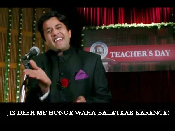 जी हां, आमिर खान चतुर के भाषण की कुछ शब्दों को बदल देते हैं, जिससे पूरे भाषण में अर्थ का अनर्थ हो जाता है। जहां तक हमें याद है, उस पूरे भाषण में चतुर एक नहीं, दो नहीं.. कई जगह बलात्कार शब्द का इस्तेमाल करते हैं।