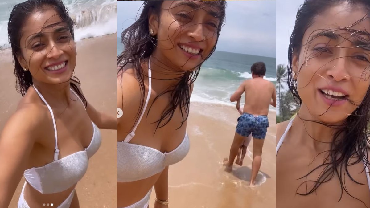 शर्टलेस पति के साथ बिकिनी में दिखी श्रिया सरन, बीच से वायरल हुआ बोल्ड वीडियो