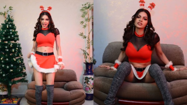 शर्लिन चोपड़ा का सेंटा लुक