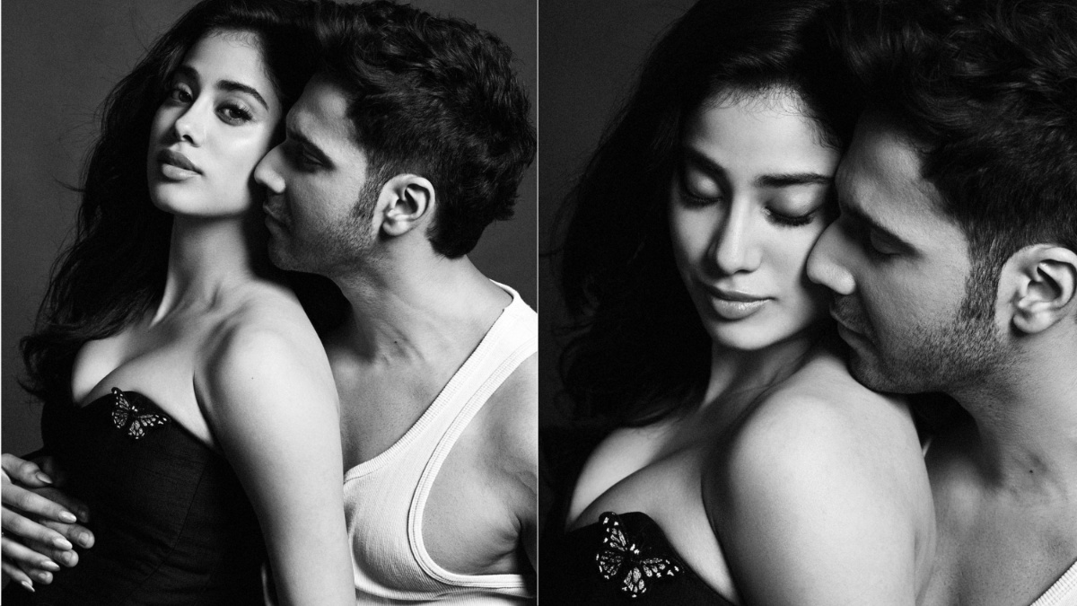 इन तस्वीरों में जाह्नवी और वरुण धवन ब्लैक आउटफिट में कैमरे के लिए पोज करते हुए काफी ज्यादा हॉट लग रहे हैं। जाह्नवी और वरुण की ये सारी तस्वीरें ब्लैक एंड व्हाइट हैं। हर तस्वीर में दोनों एक से बढ़कर एक पोज दे रहे हैं। जिसपर से फैंस का नजरें हटाना मुश्किल हो गया है।