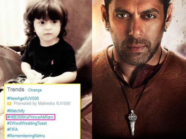 जी हां, दिन था बजरंगी भाईजान की टीजर रिलीज का। और 2 साल के हुए थे अबराम खान। फिर क्या था.. ट्विटर पर सुबह से सिर्फ अबराम ही अबराम छाए रहे। अबराम की जगह ना ले पाए सलमान खान.. ना ही बजरंगी भाईजान।
