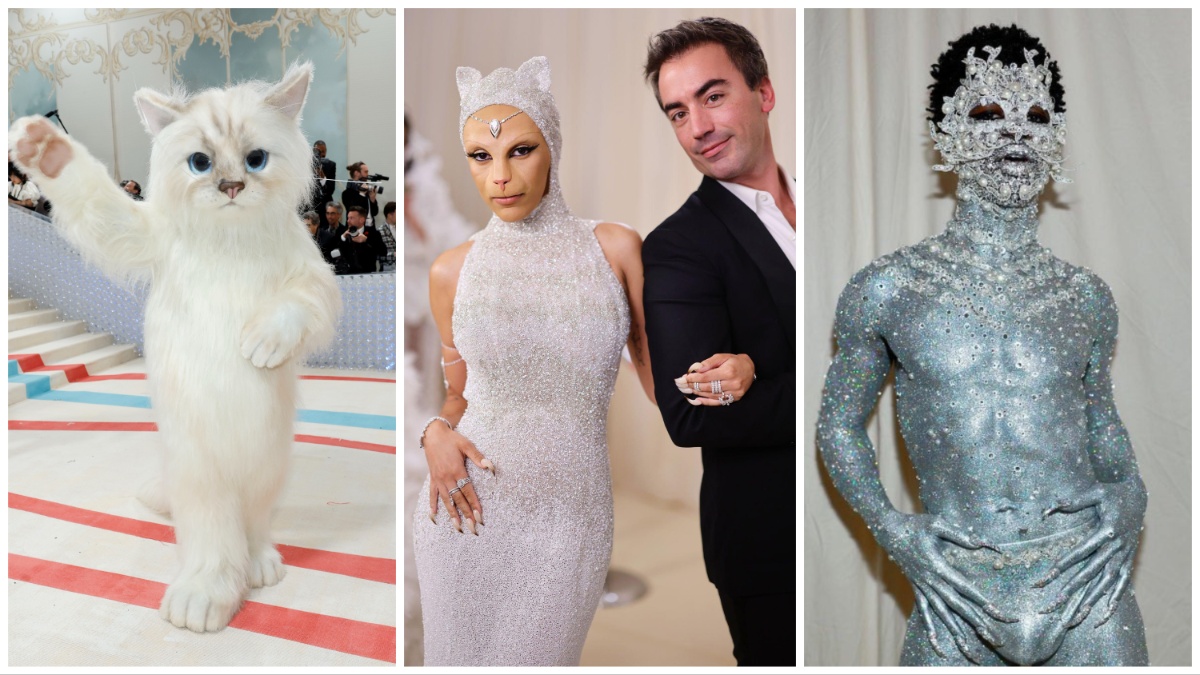 लिल नैश एक्स ने 2023 मेट गाला के रेड कार्पेट पर अपनी बॉडी दिखाकर बोल्ड स्टेटमेंट दिया। इंडस्ट्री बेबी स्टार एक थोंग और प्लेटफॉर्म बूट के अलावा और कुछ पहने नहीं दिखाई दिए। उन्होंने सिल्वर बॉडी पेंट, जगमगाते स्टोन, और उनकी गर्दन और चेहरे के चारों ओर मोतियां लगी हुई थीं, जिसकी वजह से वो एक ग्लैमरस बिल्ली की तरह नजर आ रहे थे। उन्होंने अपने थॉन्ग के साथ मोतियों की बेल्ट भी पहनी। उनके होंठ सिल्वर और मोतियों से जड़े थे। उनके शरीर में सिर्फ आंखें ही थीं जो नजर आ रही थीं। 24 साल के ये रैपर अपने लुक की वजह से बिलकुल पहचान में नहीं आ रहे थे।