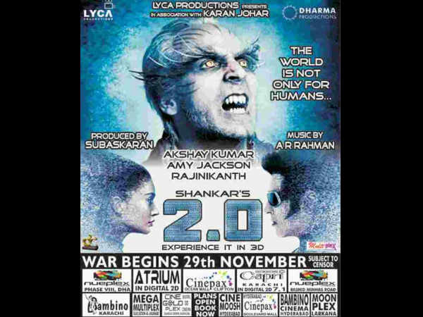 अक्षय कुमार और रजनीकांत की फिल्म 2.0 भारत ही नहीं, बल्कि पाकिस्तान में भी रिलीज होने के लिए पूरी तरह से तैयार है। पाकिस्तान के सेंसर बोर्ड ने फिल्म को पास कर दिया है और वहां भी फिल्म की एडवांस बुकिंग शुरु हो चुकी है। खास बात है कि पाकिस्तान में भी फिल्म को लेकर काफी क्रेज हैं और एडवांस बुकिंग की रिपोर्ट जबरदस्त है।