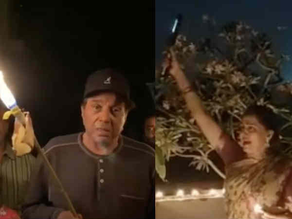9 बजे 9 मिनट - धर्मेंद्र ने जला डाली मशाल, हेमा मालिनी ने लगाए भारत माता की जय के नारे, वायरल वीडियो