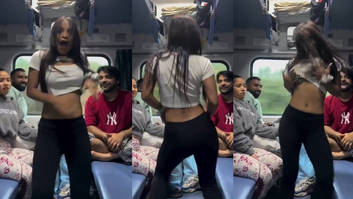 चलती ट्रेन में मचल मचल कर डांस करने लगी कमसिन लड़की, अचानक उठी टीशर्ट तो दिख गया..