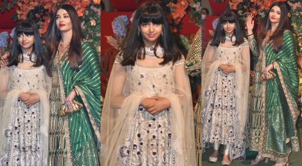 अंबानी परिवार के इस खास मौके पर ऐश्वर्या राय ने ग्रीन कलर का लॉन्ग घेरेदार सूट पहना था। खुले बाल, मैचिंग हाई हील्स में वाकई ऐश्वर्या को देख फिर से दिल धड़क उठे। वहीं बेटी आराध्या भी किसी से कम नहीं लग रही थीं।