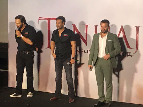 यहां पर सैफ अली खान, शरद केलकर भी अजय देवगन के साथ मौजूद रहें। इस दौरान रोहित शेट्टी और सैफ अली खान ने तानाजी के साथ अजय देवगन के एक्टर होने की खूबी पर भी बात की।