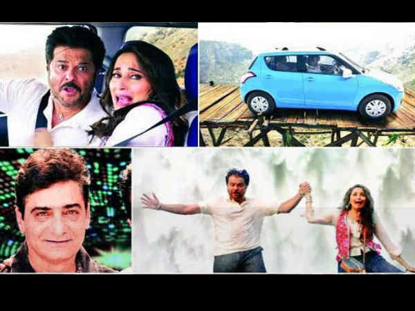 इन लीक तस्वीरों में अजय देवगन तो नहीं बल्कि सुपरस्टार अनिल कपूर और माधुरी दीक्षित नजर आ रहे हैं। जी हां! इन तस्वीरों में अनिल कपूर- माधुरी के साथ एक कार में नजर आ रहे हैं जो किसी टूटे पुल पर अटकी हुई है। ये सीन फिल्म का सबसे बड़ा स्टंट सीन बताया जा रहा है। वहीं ये भी बताया जा रहा है कि ये सारे स्टंट अनिल कपूर और माधुरी ने खुद ही किए हैं। फिल्म के डायरेक्टर इंद्र कुमार ने बताया कि आम तौर पर अनिल-माधुरी स्टंट नहीं करते लेकिन मैंने उनसे 300 फीट की ऊंचाई से छलांग लगवाई है। ये एक सीन हैं जहां टूटे पुल पर पहले ये दोनों कार चलाते हैं बाद में पानी में गिर जाते हैं।