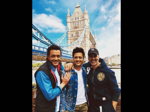 लंदन ब्रिज के सामने पोज देते हुए नजर आए अक्षय कुमार, रितेश देखमुख और बॉबी देओल