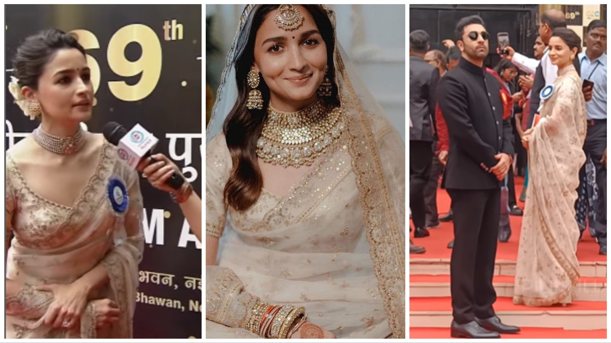 Alia Bhatt National Award: शादी वाले लकी जोड़े में नेशनल अवॉर्ड लेने पहुंचीं आलिया, पत्नी पर रणबीर को हुआ गर्व
