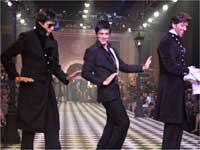 बिग बी और रितिक गुरुवार शाम रैम्प पर उतरे और उनके आकर्षक व्यक्तित्व ने समां बांध दिया था। अमिताभ काले रंग के ओवरकोट में नजर आए तो रितिक मिलिट्री जैकेट में दिखे। दोनों कलाकारों के रैम्प पर उतरने के बाद डिजाइनर करन ने दर्शकों की पहली पंक्ति में बैठे शाहरुख को भी रैम्प पर बुलाया।