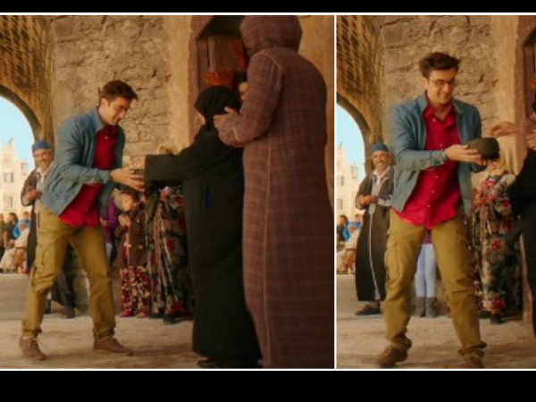 इस गाने के एक सीन में आपने देखा होगा कि रणबीर कपूर सड़कों पर डांस कर रहे हैं और साथ ही अपनी टोपी लेकर पैसे भी मांग रहे हैं। इस सीन के पीछे बहुत ही दिलचस्प कहानी है जो फिल्म की युनिट ने बताया है। दरअसल अटेंशन के लिए अनुराग बासु और उनके असिस्टेंट मोरक्को में असल में सड़कों पर नाचने लगते हैं और कई लोग इक्ट्ठा भी हो जाते हैं।