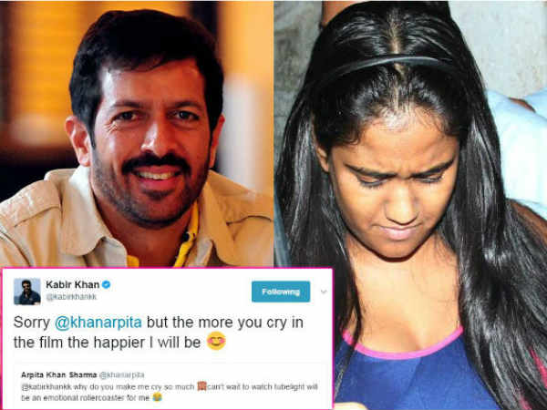 इस पर कबीर खान ने खुश होते हुए कहा। कि तुम जितने ज़्यादा आंसू बहाओगी उतनी ज़्यादा मुझे खुशी होगी। जिस पर अर्पिता का कहना था कि अगर ऐसा हो तो रोने के लिए बाल्टी लेकर जानी पड़ेगी।