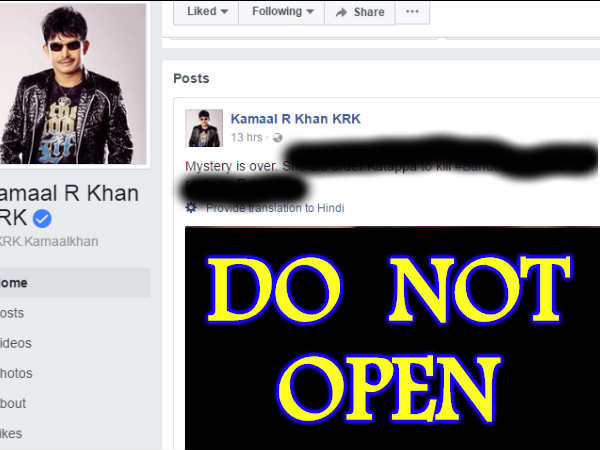 कमाल आर खान एक अजीब सा शख्स है जिसे बॉलीवुड क्यों झेलता आ रहा है पता नहीं। और अब उसने बाहुबली का क्लाईमैक्स अपनी फेसबुक प्रोफाइल पर डाल दिया है। अगर नहीं जानना है क्लाईमैक्स तो कर दीजिए उसे ब्लॉक!