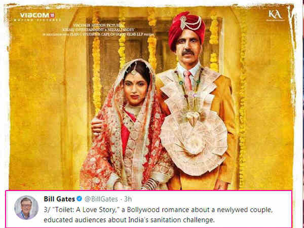अब साल के खत्म होते होते, अक्षय कुमार ने एक और उपलब्धि अपने नाम कर ली है। दरअसल, अक्षय कुमार की टॉयलेट एक प्रेम कथा को बिल गेट्स ने अपनी बेस्ट ऑफ 2017 लिस्ट में जगह दी है।
