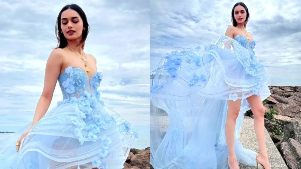 अब इसी कड़ी में एक बार फिर से मानुषी का नया लुक सामने आया है जो कि मिनटों में वायरल हो गया है। इस दौरान मानुषी स्काई कलर की लहरों वालो जालीदार ड्रेस में काफी स्टाइलिश अंदाज में पोज देती दिखाई दे रही हैं।