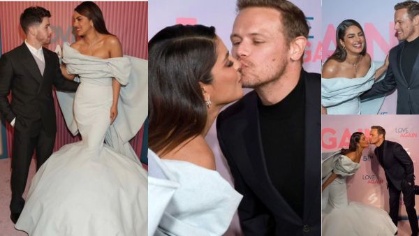 रेड कारपेट पर शिरकत करने के दौरान प्रियंका चोपड़ा ने जब लव अगेन के अपने को-स्टार सैम ह्यूगन को देखते ही उनको किस करने लगी। जैसे ही सैम रेड कारपेट पर आए प्रियंका चोपड़ा उनके पास गई और हंसते हुए उन्हें नाक एक प्यारा सा किस दिया।