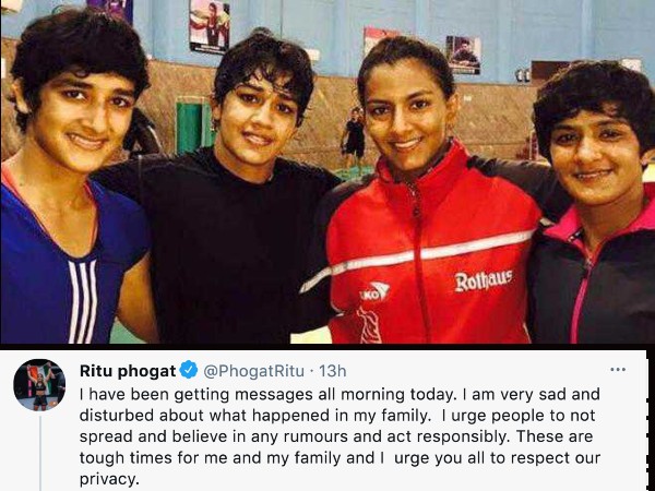 वहीं महावीर फोगाट की बेटी ऋतु फोगाट ने भी ट्वीट करते हुए लिखा - छोटी बहन रितिका की आत्मा को शांति मिले। मैं अभी भी विश्वास नहीं कर पा रही हूं कि तुम्हारे साथ क्या हो गया।