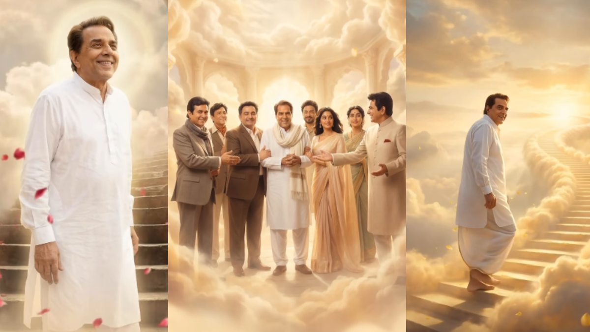 इस एआई वीडियो में पहले धर्मेंद्र को स्वर्ग की सीढ़ियां चढ़ते हुए देखा जा सकता है। बता दें कि इस वीडियो में जब दिलीप कुमार से लेकर ऋषि कपूर तक उनका स्वर्ग में स्वागत करते हुए नजर आ रहे हैं। dharmatography नाम के एक इंस्टाग्राम पेज पर इस वीडियो को साझा किया गया है जो कि काफी इमोशनल करने वाली है। सफेद धोती कुर्ते में धर्मेंद्र का ये अंदाज देख लोग हैरान हैं। बता दें कि 24 नवंबर को घर में ही इलाज के दौरान धरम पाजी ने इस दुनिया को अलविदा कह दिया था और इसके बाद घरवालों की नम आंखों ने एक एक कहानी बयां कर दी थी कि वो कितने दुखी है। इस दौरान इंड्स्ट्री के तमाम सितारे श्मशान घाट उनकी अंतिम विदाई के लिए पहुंचे थे।