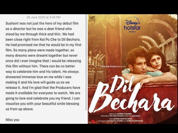 डायरेक्टर मुकेश छाबरा का दर्दनाक पोस्ट, "कभी नहीं सोचा था दिल बेचारा सुशांत के बिना रिलीज होगी"