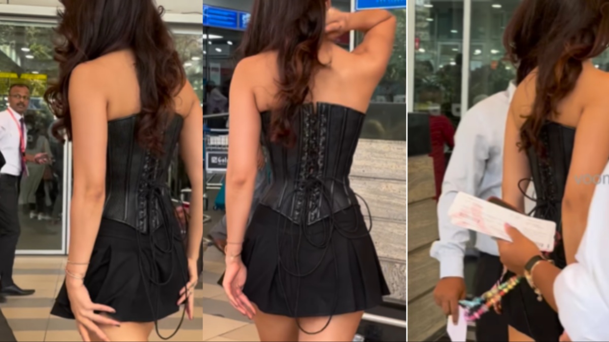 छोटी सी स्कर्ट पहनकर ये एक्ट्रेस पहुंच गई एयरपोर्ट, Oops Moment से बचने के लिए बार-बार हाथों से बचाई इज्जत