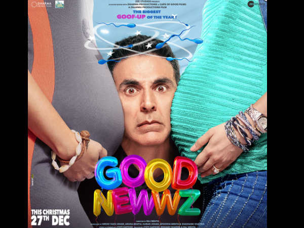 साल 2019 में अक्षय कुमार की चौथी फिल्म 'गुड न्यूज' अब सुर्खियों में आ गई है। फिल्म के फर्स्ट लुक पोस्टर्स रिलीज कर दिये गए हैं, जहां अक्षय कुमार, दिलजीत दोसांझ, करीना कपूर और कियारा आडवाणी को मजेदार अंदाज़ में देखा जा सकता है। राज मेहता के निर्देशन में बनी यह फिल्म क्रिसमस के मौके पर 27 दिसंबर को रिलीज होने वाली है।