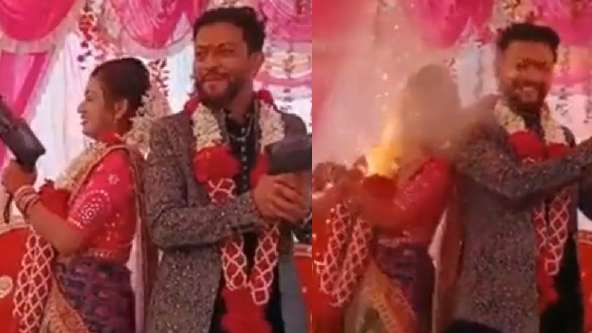VIDEO- नई नवेली दुल्हन के चेहरे पर चल गई बंदूक, दिखावा करने के चक्कर में हो गया इतना बड़ा कांड