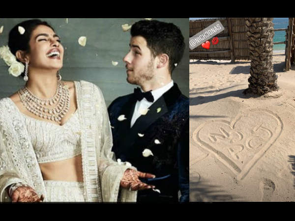 प्रियंका चोपड़ा और निक जोनस हाल ही में ईशा अंबानी की संगीत सेरेमनी के लिए उदयपुर पहुंचे थे.. वहां से निकलकर हनीमून के लिए निकल गए हैं। हालांकि इस बात की आधिकारिक जानकारी अभी नहीं मिली है लेकिन एक तस्वीर वायरल हो रही है जिससे ऐसा अंदाजा लगाया जा रहा है। इस तस्वीर में रेत पर प्रियंका चोपड़ा और निक जोनस लिखा हुआ है। ये तस्वीर सोशल मीडिया पर आते ही वायरल हो रही है और उनके फैंस इसको जमकर शेयर कर रहें हैं।