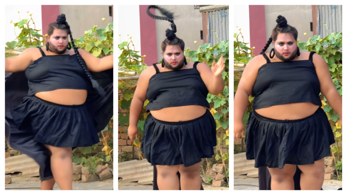आए दिन यहां पर कोई ना कोई वीडियो वायरल होता हुआ नजर आता है और इस बार भी कुछ ऐसा ही देखने को मिल रहा है। दरअसल आपको बता दें कि इंस्टाग्राम पर एक वीडियो वायरल हो रहा है और इसमें एक भारी भरकम आदमी ब्लैक कलर की क्रॉप टॉप और एक ब्लैक कलर की छोटी सी स्कर्ट पहने हुए नजर आ रहा है।