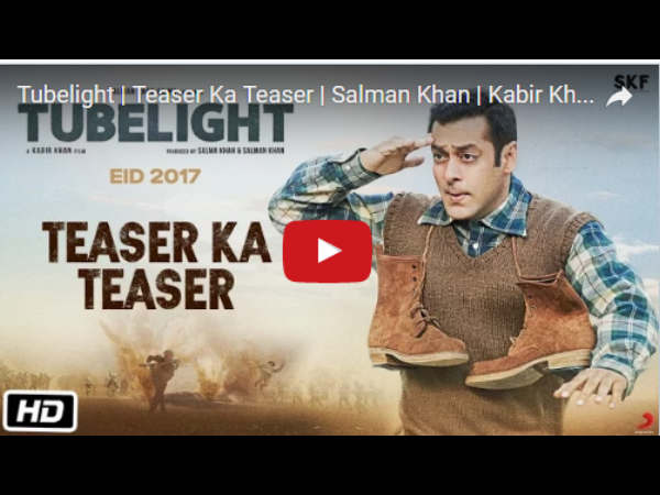 टीजर रिलीज से कुछ ही समय पहले ट्यूबलाइट के टीजर का टीजर रिलीज किया गया है। जहां कबीर खान टीजर सलमान को देखाने के लिए बेताब दिख रहे हैं। साथ ही सलमान का क्यूट सा डॉयलोग भी है।