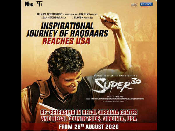 #Super30 is re-releasing in Regal Virginia Center and Regal Countryside, Virginia, USA from 28th August 2020.