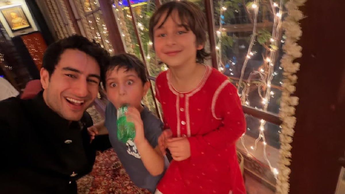फोटो में इब्राहिम ने काले रंग की शेरवानी पहनी है और काफी हैंडसम लग रहे हैं। तैमूर लाल कुर्ते में काफी क्यूट लग रहे हैं और सबसे छोटे जेह ने अपने मस्ती भरे अंदाज से सबका दिल जीत लिया। उनके हाथ में एक बोतल भी दिख रही है, जो तस्वीर को और मजेदार बना देती है।