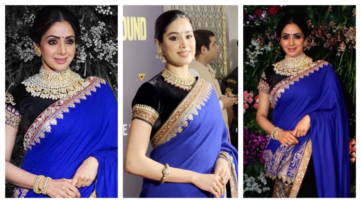 Jahnvi Kapoor Recreates Sridevi Blue Saree Look: बॉलीवुड अभिनेत्री श्रीदेवी को गहनों, साड़ियों और खूबसूरत दिखने का बेहद शौक रहा। अब उनकी इस लीगेसी को उनकी बेटी जाह्नवी कपूर आगे बढ़ा रही हैं और समय समय पर श्रीदेवी की साड़ियां पहनकर और उनके लुक्स को रीक्रिएट कर जाह्नवी कपूर अपनी मां श्रीदेवी को लोगों को दिलों में फिर से जिंदा कर देती हैं। अब एक बार फिर से जाह्नवी कपूर ने हर किसी को हैरान कर दिया है।