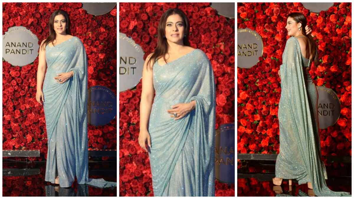 इस मौके पर काजोल आइस-ब्लू कलर की शिमरी साड़ी में बहुत खूबसूरत लग रही थीं, जिसमें थाई-हाई स्लिट थी। उन्होंने हल्के मेकअप का विकल्प चुना था और अपने बालों को खुला रखत हुए प्लेटफॉर्म हील्स पहनी थी।