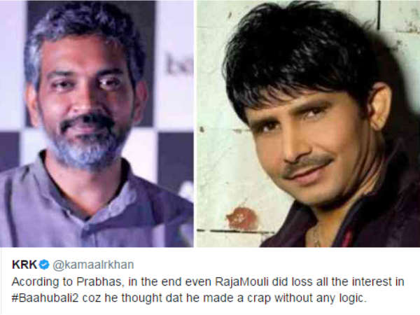 कमाल आर खान वैसे तो ऊटपटांग ही बोलते हैं और इस बार उनका निशाना है बाहुबली 2। फिल्म का रिव्यू करके भी केआरके का मन नहीं भरा तो उन्होंने ट्विटर पर फिल्म के बारे में कुछ बातें लिखना शुरू की।