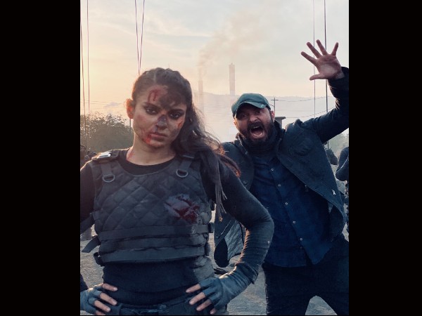 14 घंटे लगातार एक्शन करके ऐसी हो गई है कंगना रनौत की हालत, 'धाकड़' के सेट से तस्वीर वायरल!