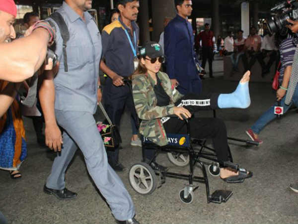 कंगना रनौत अपनी आने वाली फिल्म मणिकर्णिका की शूटिंग के दौरान घायल हो गई हैं। उनके पैर में बुरी तरह चोट लगी है और वो एयरपोर्ट पर व्हीलचेयर में स्पॉट की गई हैं। स्टंट करने के दौरान कंगना रनौत के साथ ये हादसा हुआ है और वो जोधपुर से वापस लौट आई हैं।