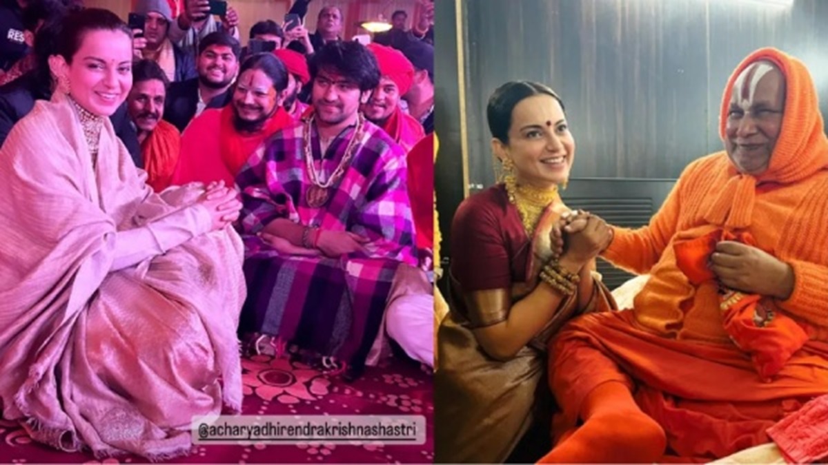 Kangana Ranaut Dhirendra Krishna Shastri: बॉलीवुड अभिनेत्री कंगना रनौत इन दिनों पूरी तरह से भगवान श्री राम के रंग में डूबी हुई हैं। अयोध्या में कंगना रनौत का एक अलग ही रंग देखने को मिल रहा है। कभी मंदिर की साफ सफाई करते हैं तो कभी जय श्री राम के नारे लगाते तो कभी धर्म गुरुओं के कदमों में बैठकर पौराणिक कथाएं सुनते अभिनेत्री की तमाम तस्वीरें और वीडियो सामने आईं।