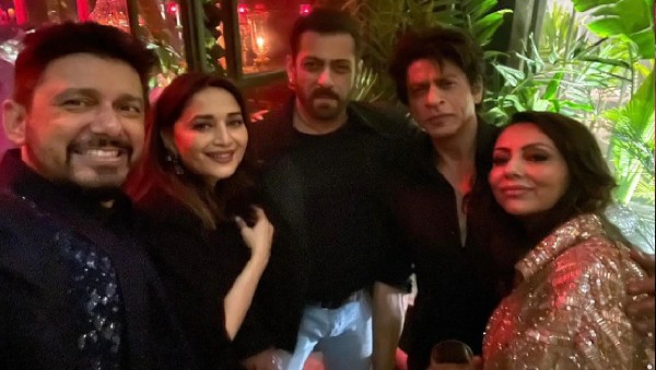 दरअसल माधुरी दीक्षित ने एक तस्वीर साझा की है जिसमें उनके पति के अलावा, सलमान खान, शाहरुख खान और गौरी खान नजर आ रहीं हैं। "शाहरुख खान करण के जन्मदिन की पार्टी में मौजूद थे।