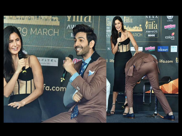 लेकिन ऐसा कुछ हुआ कि कार्तिक को पैर पकड़कर कैटरीना से माफी मांगनी पड़ी। इस दौरान वहां पर पूरी मीडिया के साथ कार्तिक और कैटरीना के अलावा दीया मिर्जा भी पहुंचे। प्रेस कॅान्फ्रेंस शुरू होने पर कैटरीना कैफ ने मजाक करते हुए कहा कि कार्तिक आपको सबसे पहले देरी से आने के लिए माफी मांगना चाहिए। कैटरीना के इतना कहने पर उन्होंने जरा सी भी देरी नहीं की।