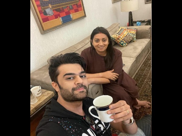 अपने सोशल मीडिया पर मनीष पॉल ने स्मृति ईरानी के साथ बातचीत की तस्वीरें साझा कीं, "एक प्याली काढ़ा पिलाने के लिए स्मृति मैडम धन्यवाद .... क्या समय आ गया है ... चाय की जगह सब काढ़ा पीने लगे हैं !! लेकिन मुझे आमंत्रित करने के लिए धन्यवाद।केवल तस्वीर के लिए मास्क हटा दिया गया था।