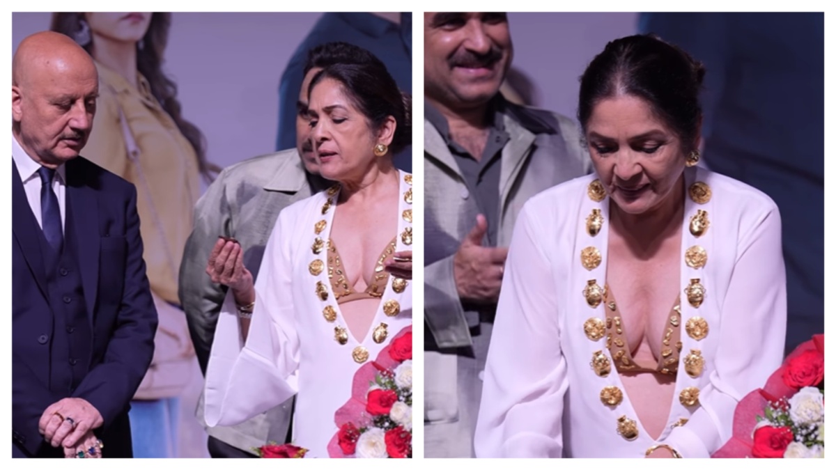 छाछठ की उम्र में नीना गुप्ता का ग्लैमर, केक खिलाने में छूटे अनुपम खेरे पसीने