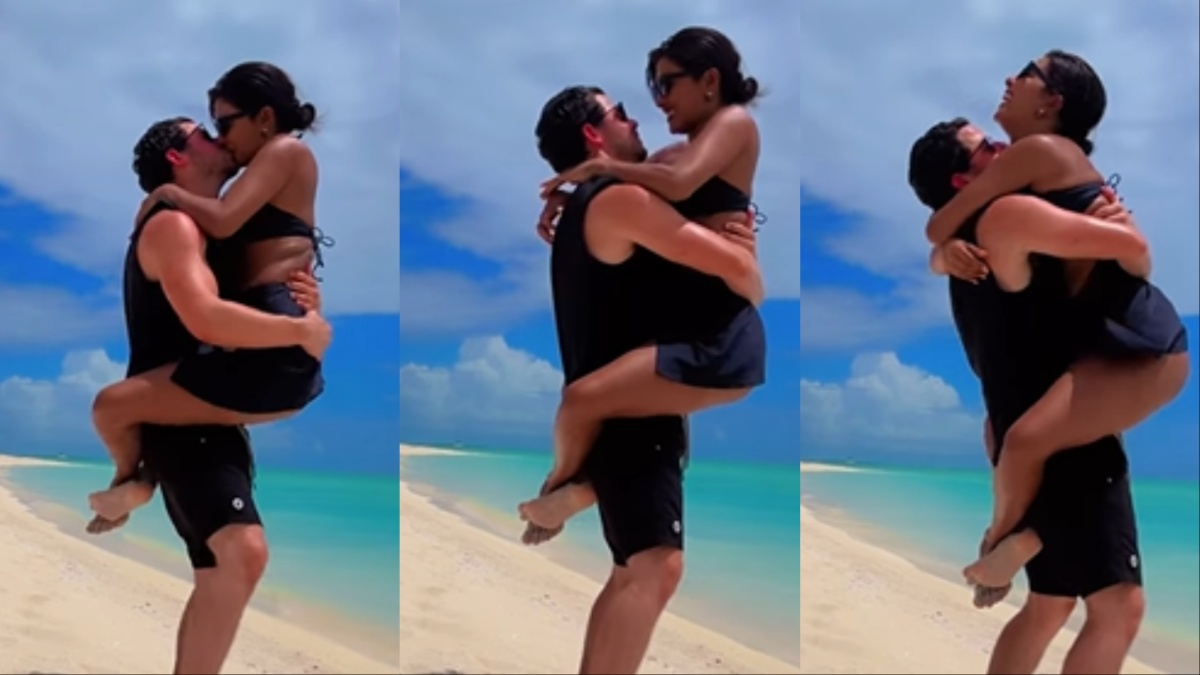 Nick Jonas Priyanka Chopra Kissing Video: निक जोनस और प्रियंका चोपड़ा एक बार फिर अपनी केमिस्ट्री को लेकर सुर्खियों में हैं। इस बार यह कपल बीच वेकेशन की वजह से चर्चा में आ गया है।