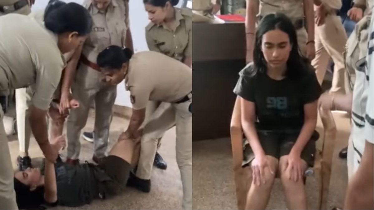 इस वीडियो में दिख रहा है कि एक जमीन पर लेटी हुई है और उसे कुछ महिला कॉन्स्टेबल उठाने की कोशिश कर रही हैं। फिर महिला कॉन्स्टेबल उस लड़की को कुर्सी पर बैठाती हैं। महिला कॉन्स्टेबल उस महिला से सवाल पूछती हैं लेकिन वो तुरंत सवाल पूछने वाली कॉन्स्टेबल को लात मारती है और फिर दूसरी महिला कॉन्स्टेबल उसे थप्पड़ मारती है। सभी महिला पुलिसकर्मी मिलकर उस महिला को संभालने की कोशिश करती हैं।