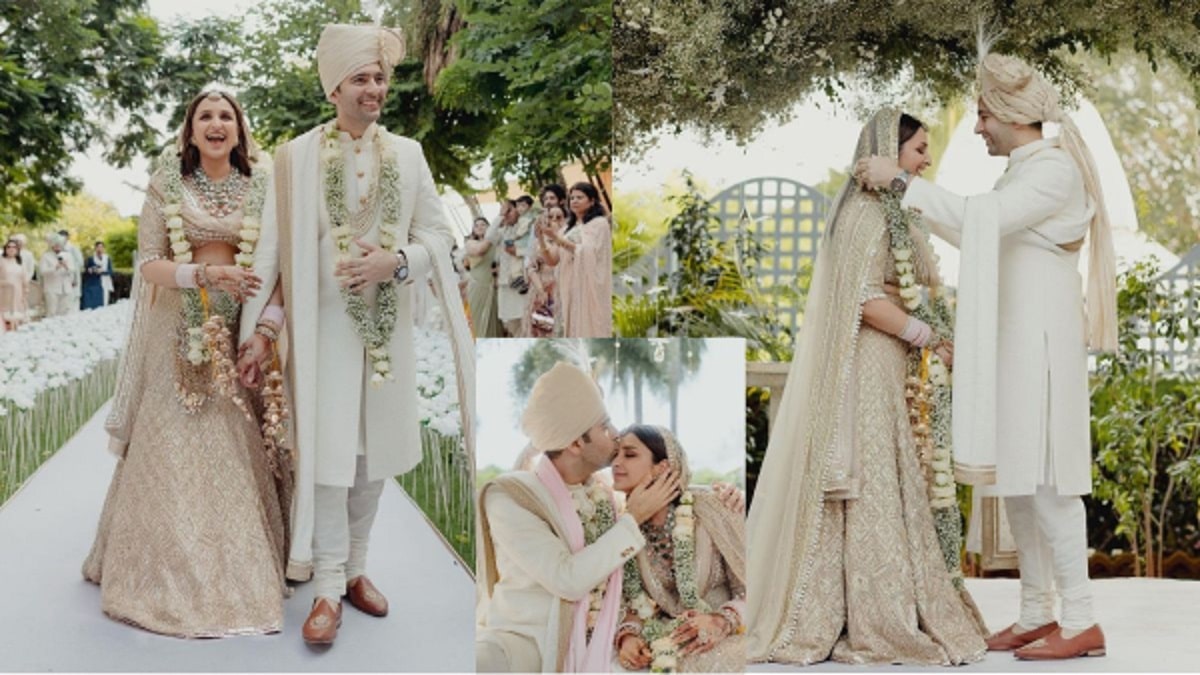 Parineeti Chopra Wedding Outfits: परिणीति चोपड़ा और राघव चड्ढा ने उदपुर के लीला पैलेस में सात फेरे ले लिए और अब ये कपल ऑफिशियल हसबैंड वाइफ बन गए हैं। एक्ट्रेस ने सोमवार सुबह अपने इंस्टाग्राम पर अपनी ड्रीमी वेडिंग की कईं तस्वीरें शेयर कर फैंस को खुश कर दिया। नई नवेली दुल्हन परिणीति अपन शादी की तस्वीरों में बेहद खूबसूरत लग रही हैं वहीं राघव भी उनके सपनों के राजकुमार ही लग रहे हैं। इन सबके बीच एक्ट्रेस का ब्राइडल लहंगा काफी चर्चा का विषय बना हुआ है। चलिए जानते हैं आखिर परिणीति चोपड़ा के शादी के जोड़े में क्या-क्या खास था...