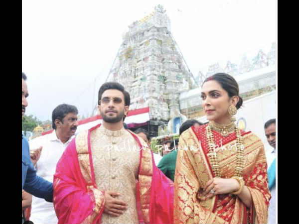 रणवीर सिंह और दीपिका पादुकोण आज अपनी शादी की पहली सालगिरह मना रहे हैं और इस मौके पर दोनों अपने पूरे परिवार के साथ तिरूपति बालाजी के दर्शन करने पहुंचे हैं। रणवीर सिंह और दीपिका पादुकोण ने 14 नवंबर 2018 को इटली के लेक कोमो में आज के दिन कोंकणी रीति रिवाज़ से शादी कर ली थी। शादी के एक साल पूरे करने पर दोनों बालाजी का आशीर्वाद लेने पहुंचे।