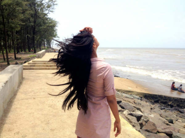 अलीबाग के बीच पर लहराते पूनम के बाल